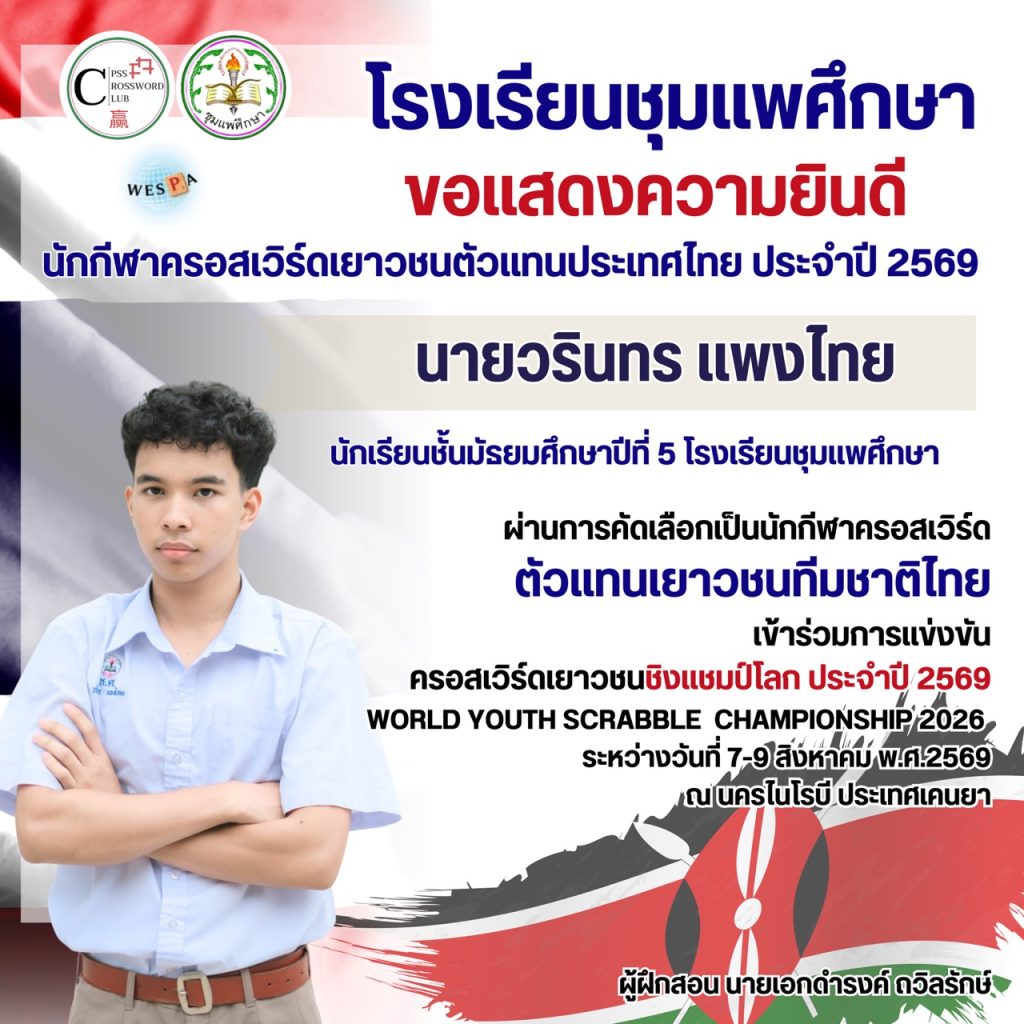 ขอแสดงความยินดี กับ นายวรินทร แพงไทย นักเรียนชั้นมัธยมศึกษาปีที่ 5 ผ่านการคัดเลือกเป็นนักกีฬาครอสเวิร์ด ตัวแทนเยาวชนทีมชาติไทย ประจำปี 2569 1 เม.ย. 25691 เม.ย. 2026สมรักษ์ สิงห์คำรางวัล