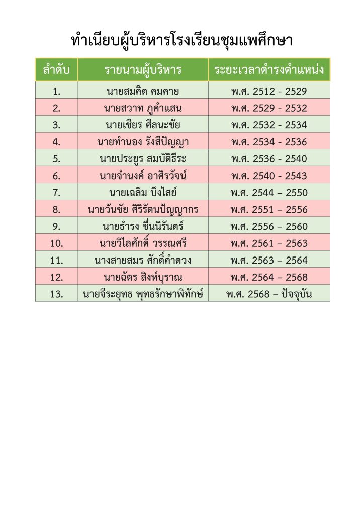 ทำเนียบผู้บริหารโรงเรียนชุมแพศึกษา